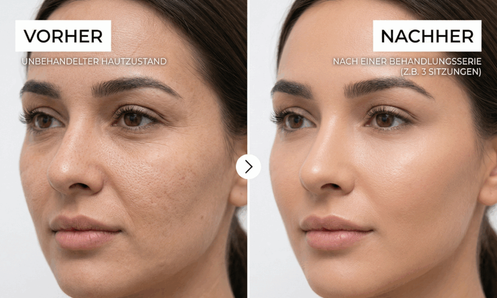 Für ein nachhaltiges und optimales Ergebnis empfehle ich in der Regel eine Kur von 3 bis 4 Behandlungen im Abstand von jeweils 4 bis 6 Wochen. Die genaue Anzahl hängt von deinem individuellen Hautzustand und deinen Zielen ab.